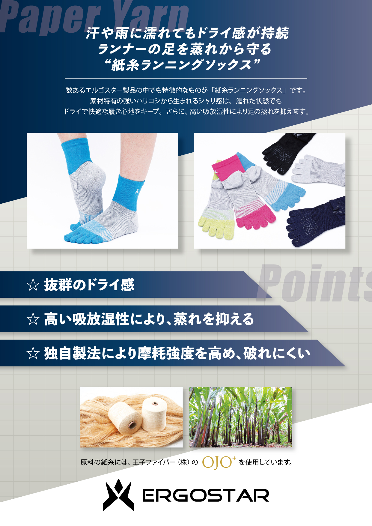 キタイ様のソックスブランド「ERGOSTAR」の、商品PR用パネルを作成させていただきました。