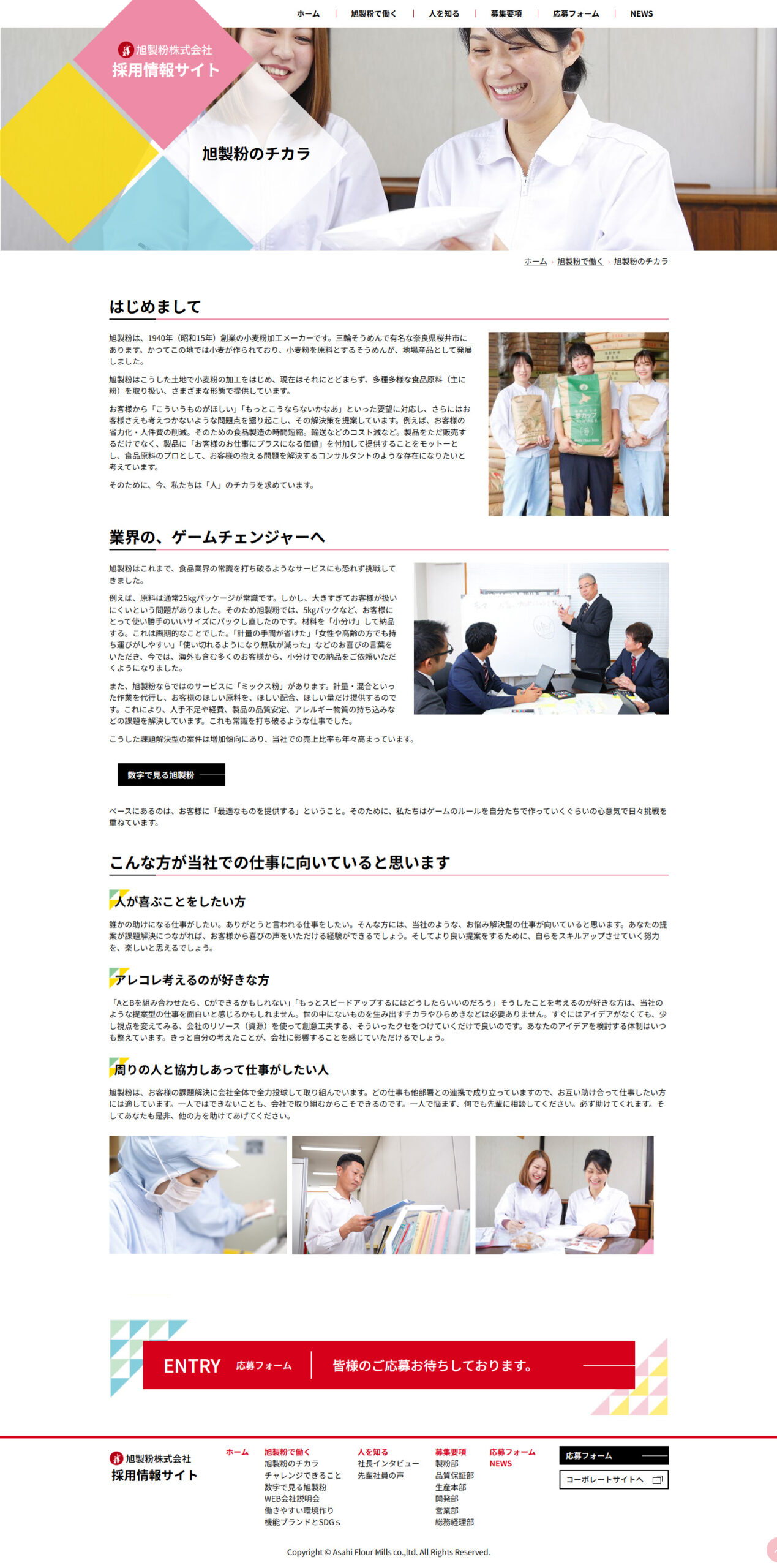 旭製粉様の「食のチカラ=人のチカラ」をキャッチコピーとした採用情報サイトです。